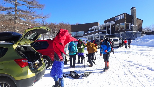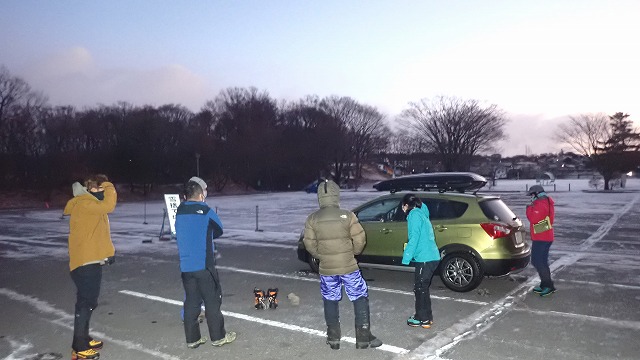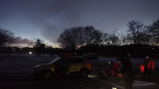 2022年1月11日 / 最終更新日時 : 2024年6月28日 t k ピークハント 2021,2022 冬合宿 12/31~1/1にて冬合宿を行いました! 浅間山へ(黒斑山2404m、蛇骨岳2366m) 参加者は9名、年末の12/31に出発!大みそかの食事場所の確保に苦しみましたが、良い食事処にめぐり合って大晦日宴会ができました。極寒で幕営して元日に登山口に向かいます。駐車場は―20℃です。身支度して雪山に向かいます。黒斑山に到着するも天気はあんまり・・Sリーダーの掛け声で蛇骨山へ!すると、どうでしょう見る見る好天に、蛇骨山に着くころにはガトーショコラの浅間山です!皆頑張ってよかった!帰りは富士山、北アルプスを見ながらの下山となり大満足でした。今年も良い登山が沢山できますように!! FacebookXBluesky