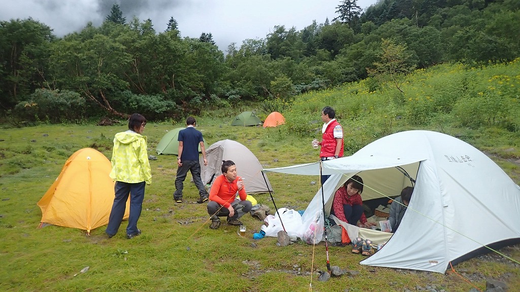 2022年9月23日 / 最終更新日時 : 2024年6月12日 t k 春・夏・冬 合宿 2022 夏合宿 北岳 8/12-14 北岳(3193m) 2022 夏合宿のメインは北岳バットレスです。 Mさんは1年かけてトレーニングして挑んでいます! 8/12 芦安から入り御池ベースでテントを張ります。台風のせいで雨・・夕方には雨も上がり来れなかった会員さんの差し入れの豚ステーキで舌鼓(^^♪ やばいくらい美味しい 8/13 夜中から天気を気にする・・明け方から雨・・バットレスは断念・・ 縦走組と北岳を登頂して、夜は残念会・・ 8/14下山 お盆の夏休みは天気に恵まれなかったけれど、皆で賑やかく幕営もできて楽しかった!! FacebookXBluesky