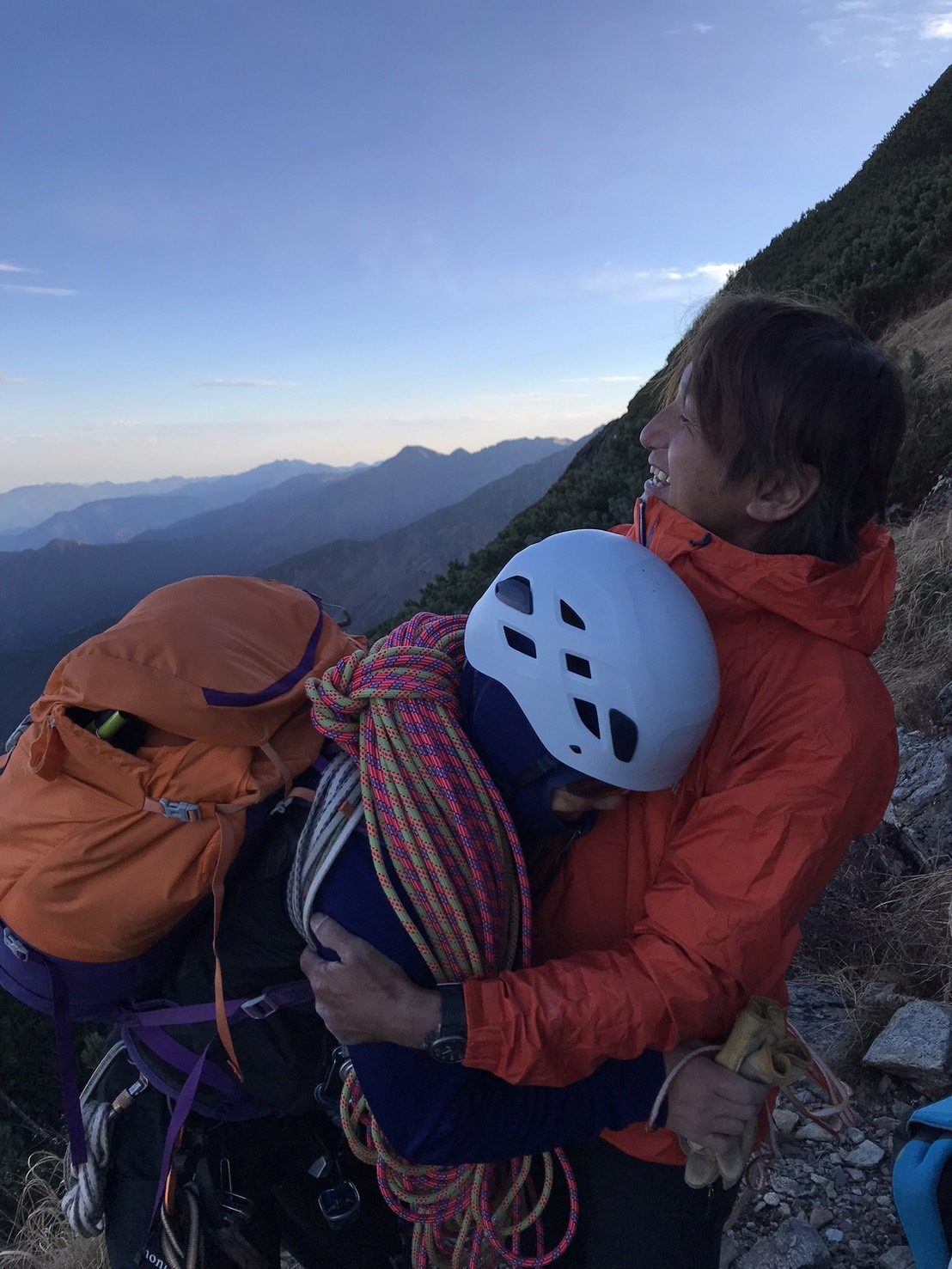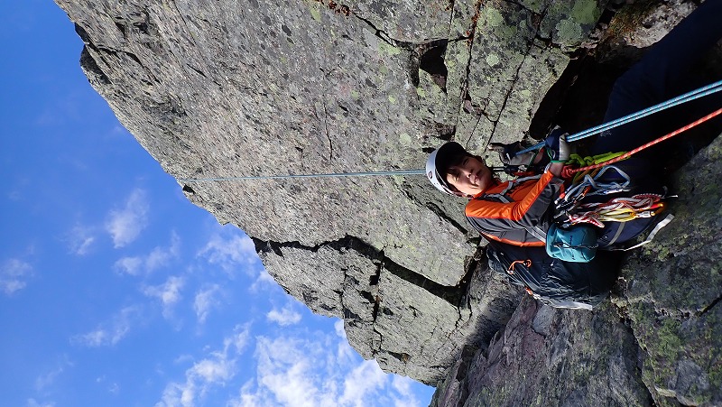 ※Mさんのコメント・・・北岳の東面に広がる岩場。絶対行かない、行けない場所だと思っていました。会に入っているから行けた「バットレス第四尾根」! クライミングの練習からみなさんのお世話になり、感謝しかないです。
