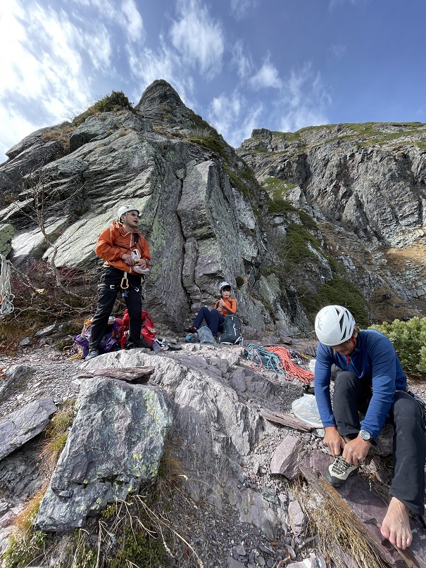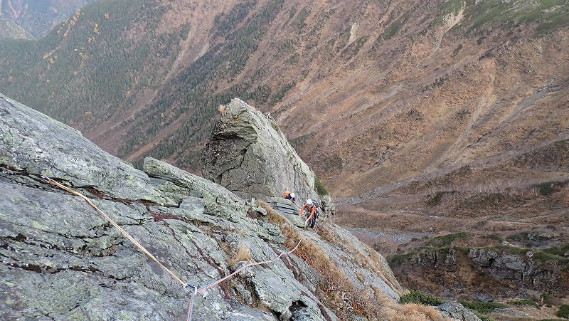 当初は10/24にアタックの予定でしたが天気が崩れそうな感じなので1日目にアタック、早朝のバスに乗り御池小屋からBガリーから取付き1日で周りました。下山はヘッデンでした。