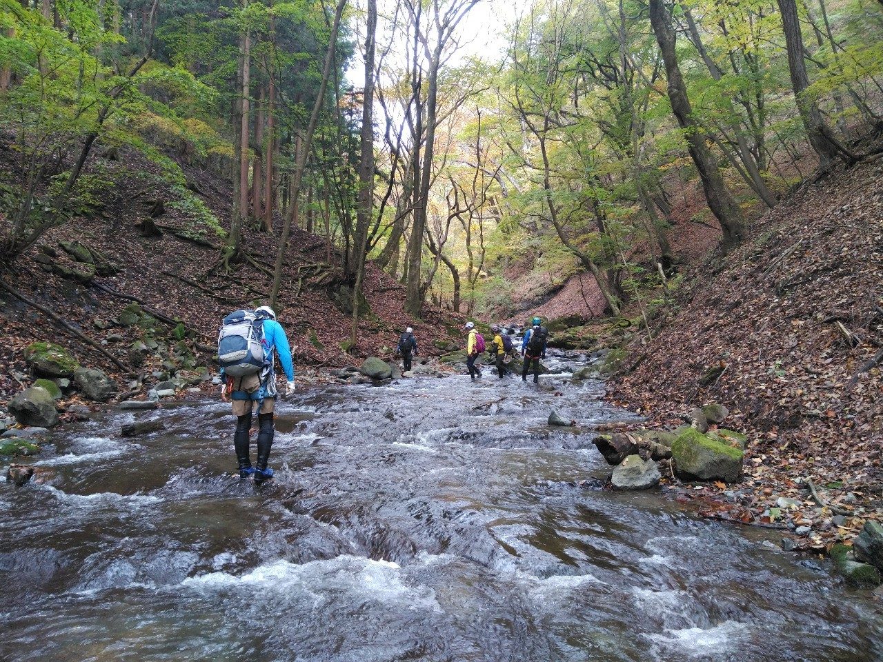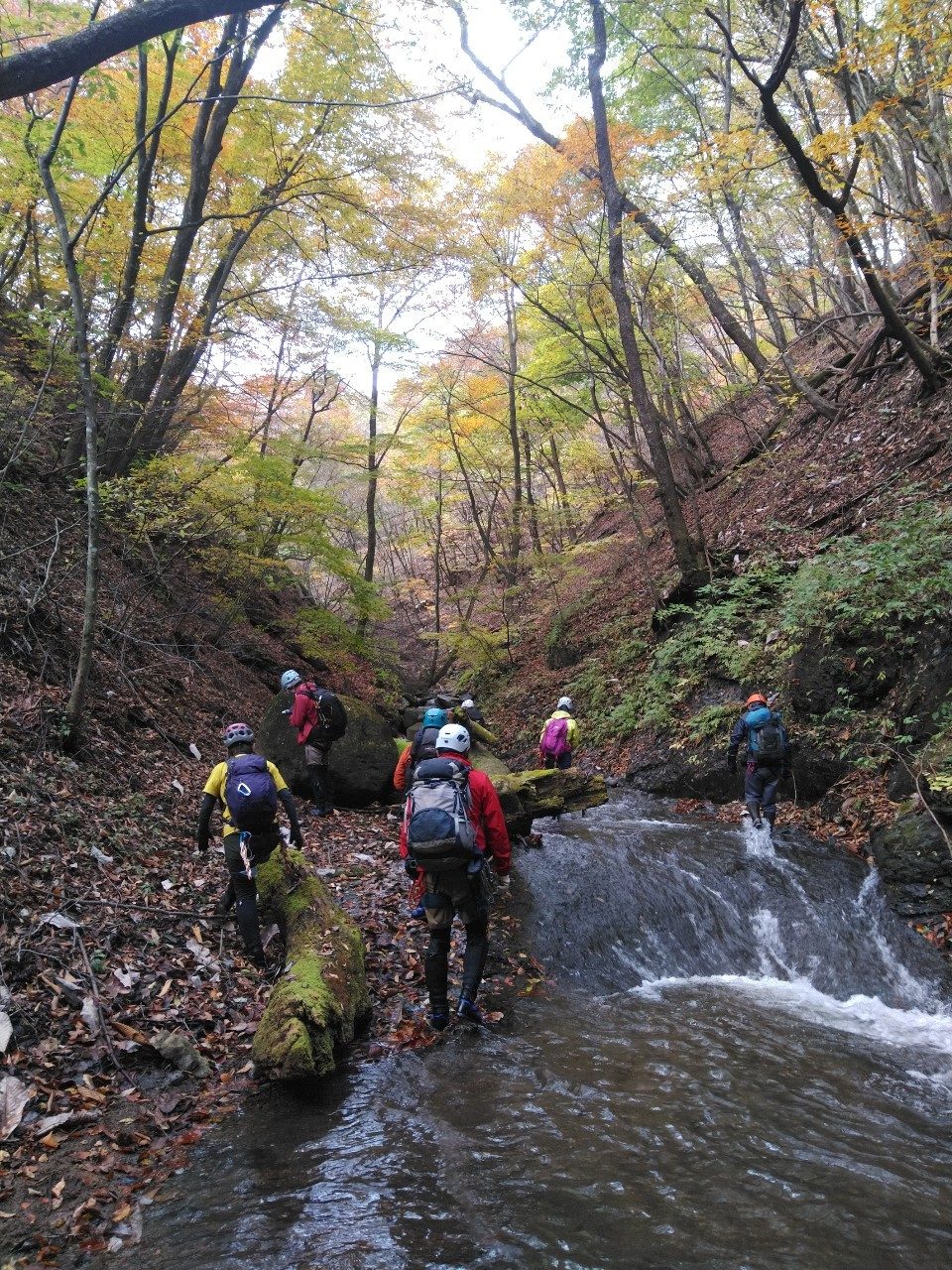 今年のシメ沢に、紅葉を狙って、岡崎山岳会の皆さんと合同で碓氷川本流に行ってきました。