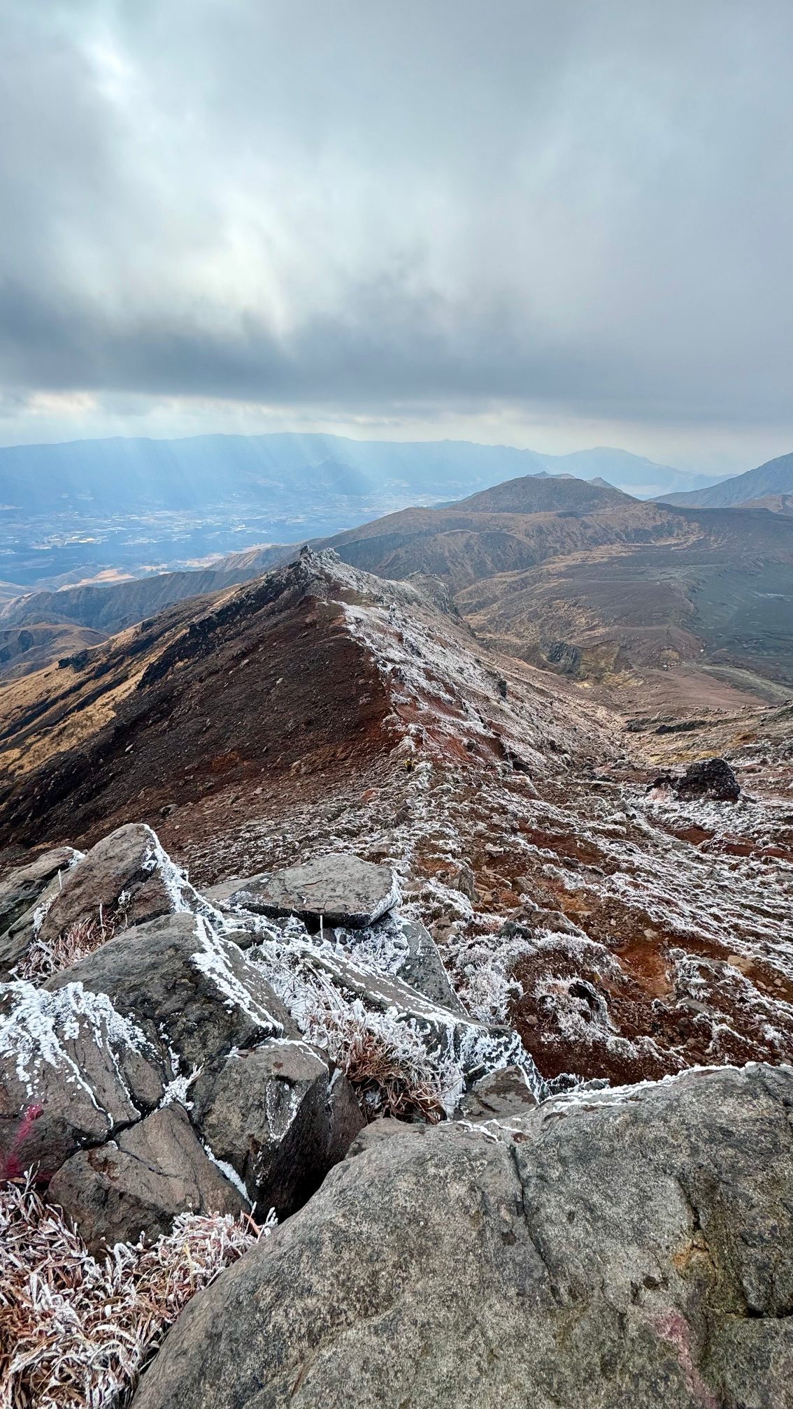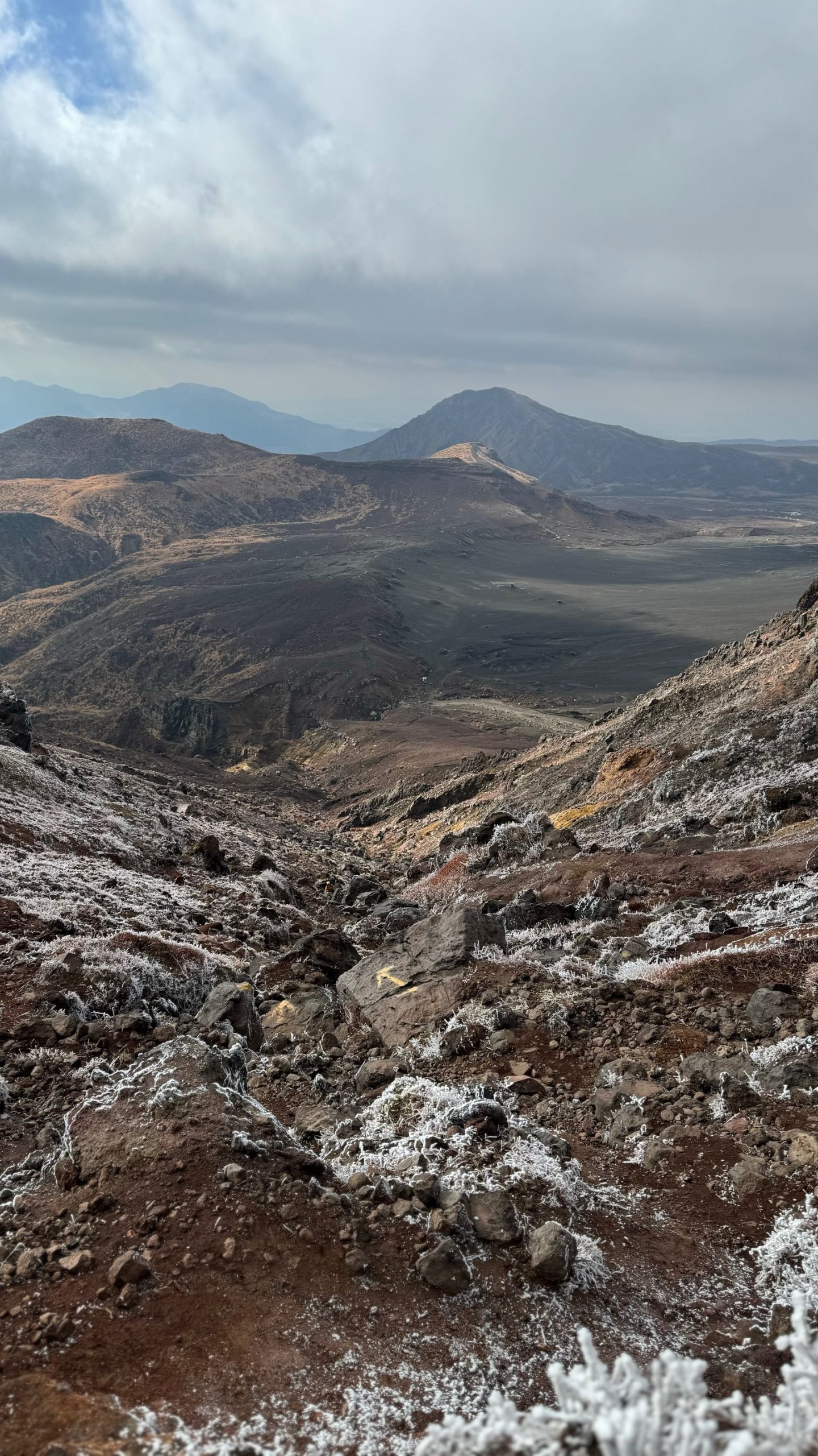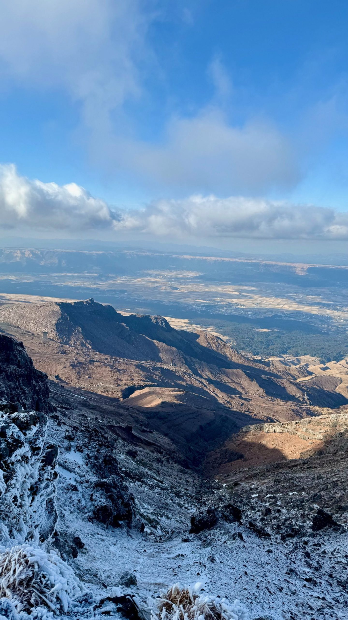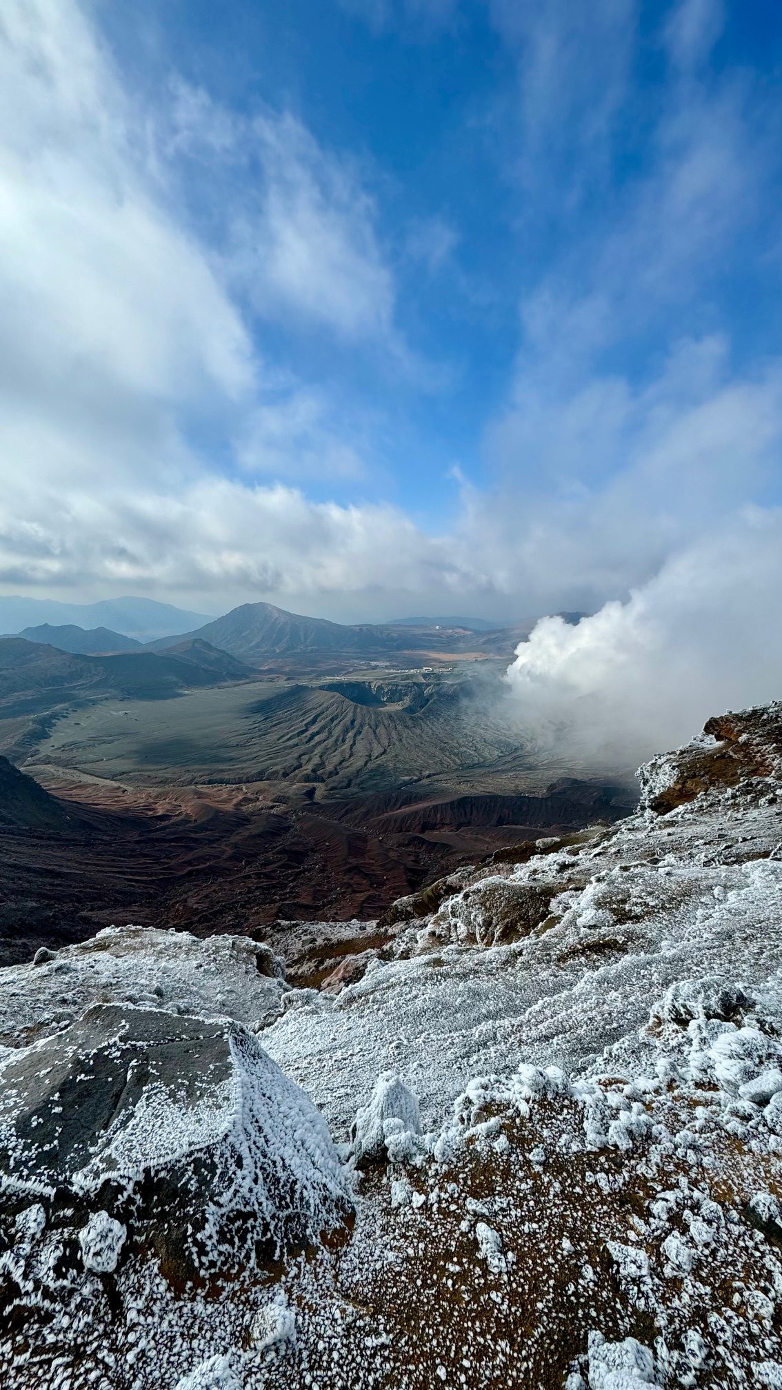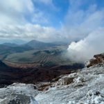 2025年1月5日 / 最終更新日時 : 2025年1月5日 kh ピークハント 12/27 阿蘇山 ”火の国”熊本県の山【日本百名山】 人生初の九州の山。 初日は”火の国”熊本県の阿蘇山。 活火山登山を初トライして気分はハイテンション。 赤土や硫黄のにおいと噴煙、巨大なカルデラはまるで別世界。 登るにつれて樹氷?草氷が現れてその上爆風で体感温度は下がり辛かった( ノД`)シクシク…。 しかし絶景に魅了されて、寒い寒い(´;ω;`)ウゥゥと震えながらもシャッターチャンスは見逃さない私でしたw (コメント:kpon) FacebookXBluesky