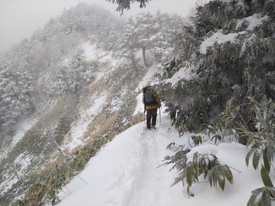 歩荷がきついが、トレースに助けられる。