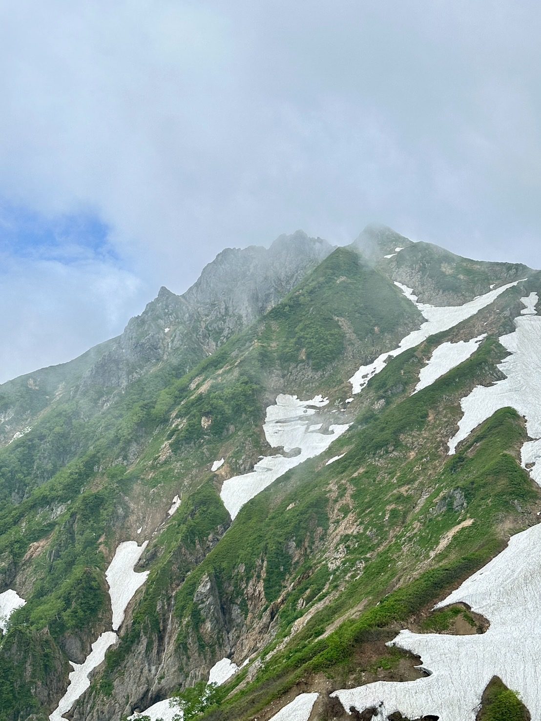 唐松岳も五竜岳も山頂では景色がみられませんでしたが、下山時には、どちらも山の形が見れたので良かったです。