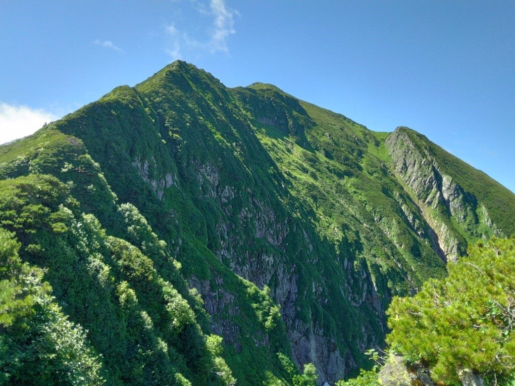 手前の尖ったのはピークではなく奥の山がピークと分かりがっかりする。ハイマツの道や岩場を通過する。