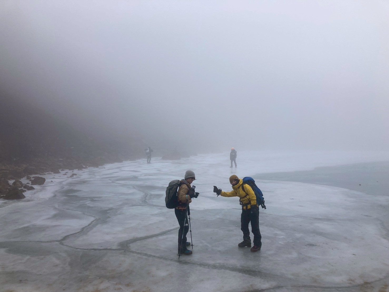 我らも登山靴で恐る恐る氷の上を歩いてみたけれど、おー滑る!
