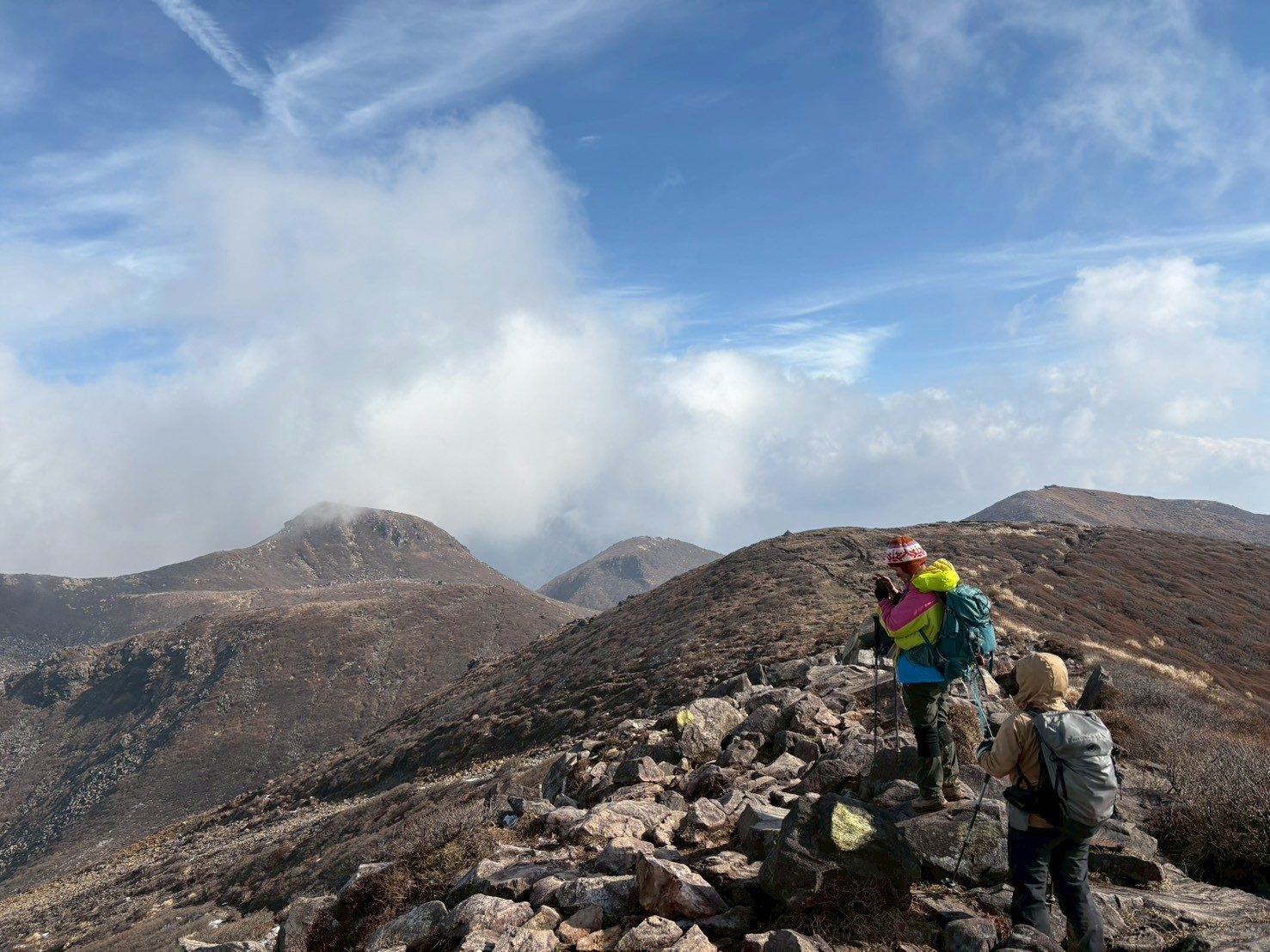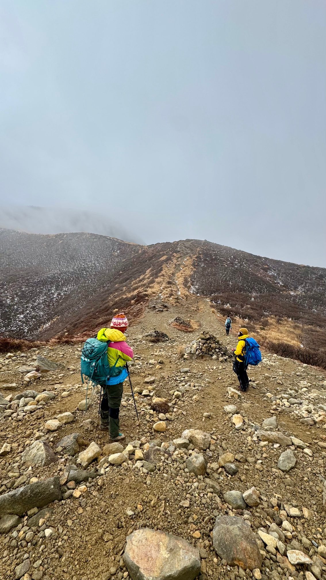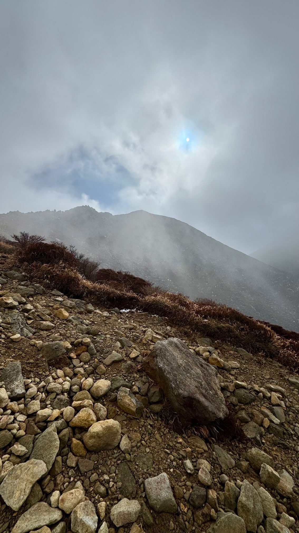 午前中はガスって少し緊張感があり幻想的で、午後は一転して視界が開けて絶景だった。