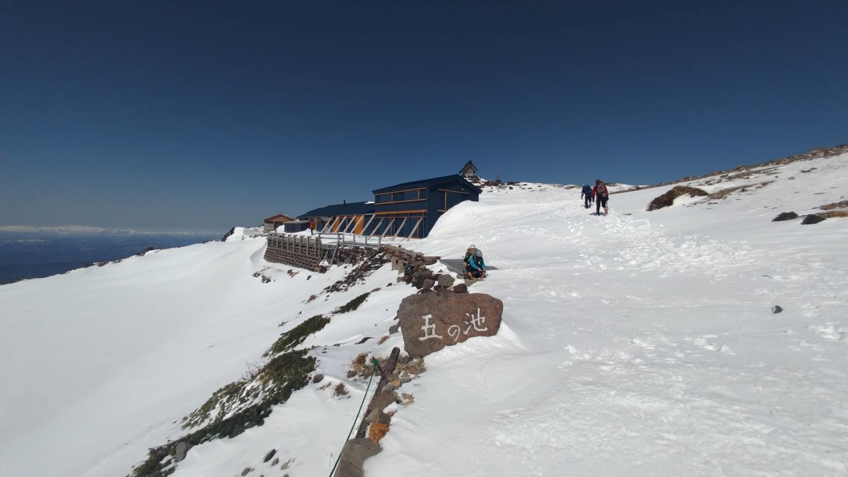 摩利支天山頂で証拠写真をパチリ、五の池小屋まで戻ります。